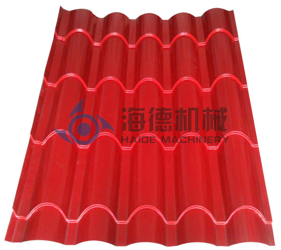 彩钢琉璃瓦设备主要由放料机、进料导入平台、成型主机、冲模压型装置、成型剪切装置、液压站、电脑控制系统、成品托架等几部分组成。
