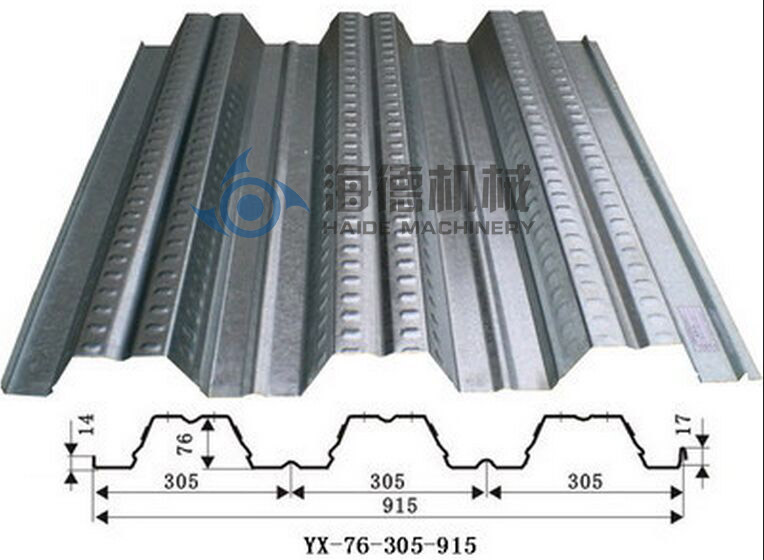 该机生产的楼承钢板,用于楼层楼面板,具有波峰高、强度大等特点,而且生产自动化程度高,成本低廉。