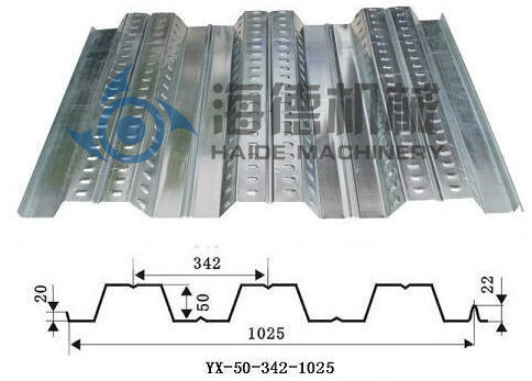 该机生产的楼承钢板,用于楼层楼面板,具有波峰高、强度大等特点,而且生产自动化程度高,成本低廉。