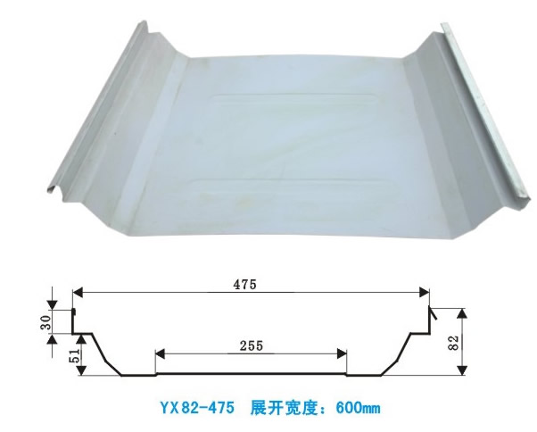 经辊轧成型的单层压型板属咬合式屋面板具有波峰高、 强度大 、无螺钉锁边咬口安装, 搭接安装安全可靠, 防水抗台防暴性能强等特点,